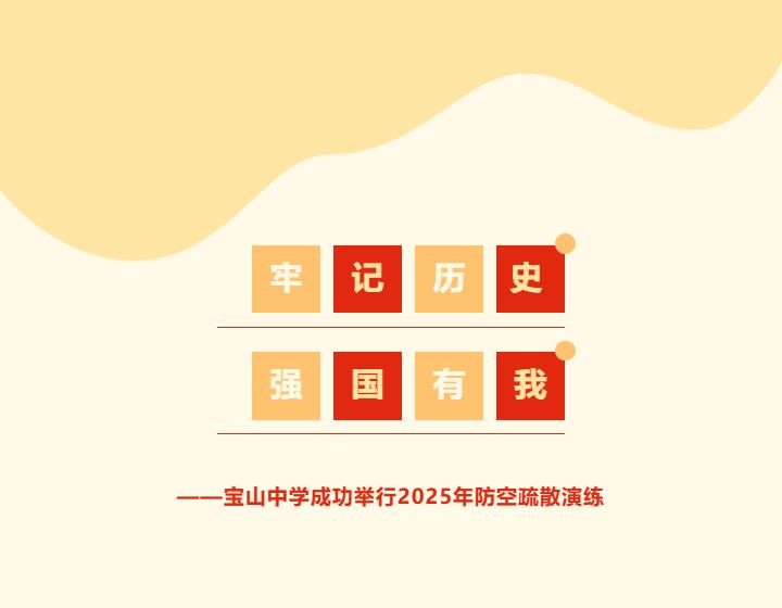 为深入贯彻“弘扬抗战精神,共筑国防长城”主要思想,9月19日上午9时,宝山中学全体师生在学校统一组织下,成功举行了以“牢记历史,强国有我”为主题的防空应急疏散演练活动。此次演练既是对中国人民抗日战争胜利80周年的庄严纪念,也是对全体师生国防观念和应急避险能力的一次全面检验。