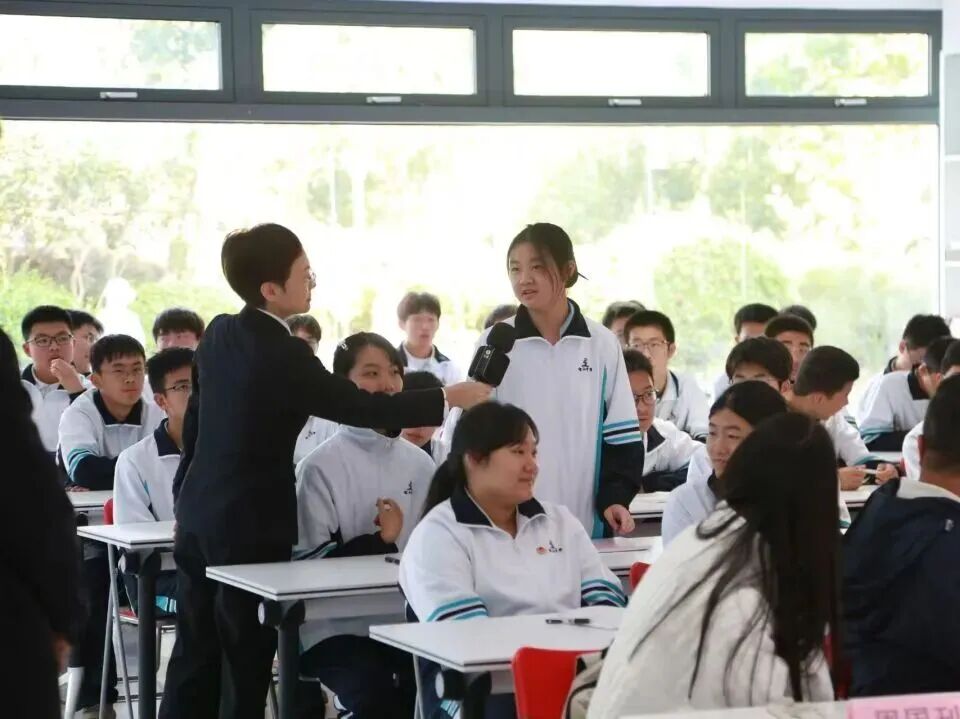 参观之后,陈春兰检察长走上讲台,为宝山中学的同学们带来了一堂生动而深情的法治课。她没有拘泥于法条,而是采用模拟议题的方式,让“全过程人民民主”的概念不再遥远,而是生活中可以感知的温度、成长中可以依靠的力量。这堂“行走的法治课”,把课堂搬进社会现场,让规则意识在艺术氛围中自然生根。
