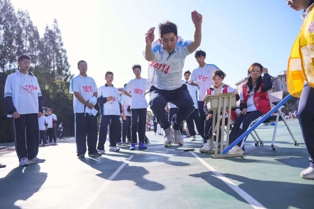 这里有速度的较量——50米、100米的冲刺;这里有耐力的考验——女子800米、男子1000米的坚持;这里更有力量的迸发——立定跳远、实心球前抛!当然,还少不了团结协作的集体项目:整齐划一的广播操、默契穿梭的三分钟长绳、激动人心的50米迎面接力!