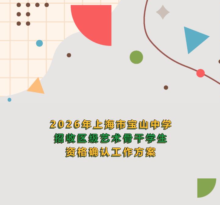 名单由区教育局审核后,将在4月28日(周二)至5月7日(周四)于学校及宝山区教育局公示5个工作日,公示无异议的列为招生学校艺术骨干学生备取生,并同时报上海市宝山区教育考试中心。