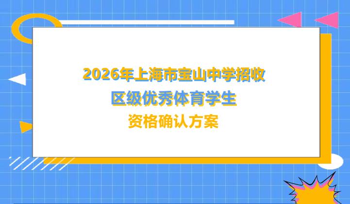 具有2026年上海市中招报名资格,报考区为宝山区,且具备以下条件之一的学生,可填写《2026年上海市高中阶段学校区级优秀体育学生资格确认报名表》(以下简称《报名表》附件1),并经毕业学校公示5个工作日。1名学生只能报名一所具有高中阶段学校区级优秀体育学生招生资格的高中学校。