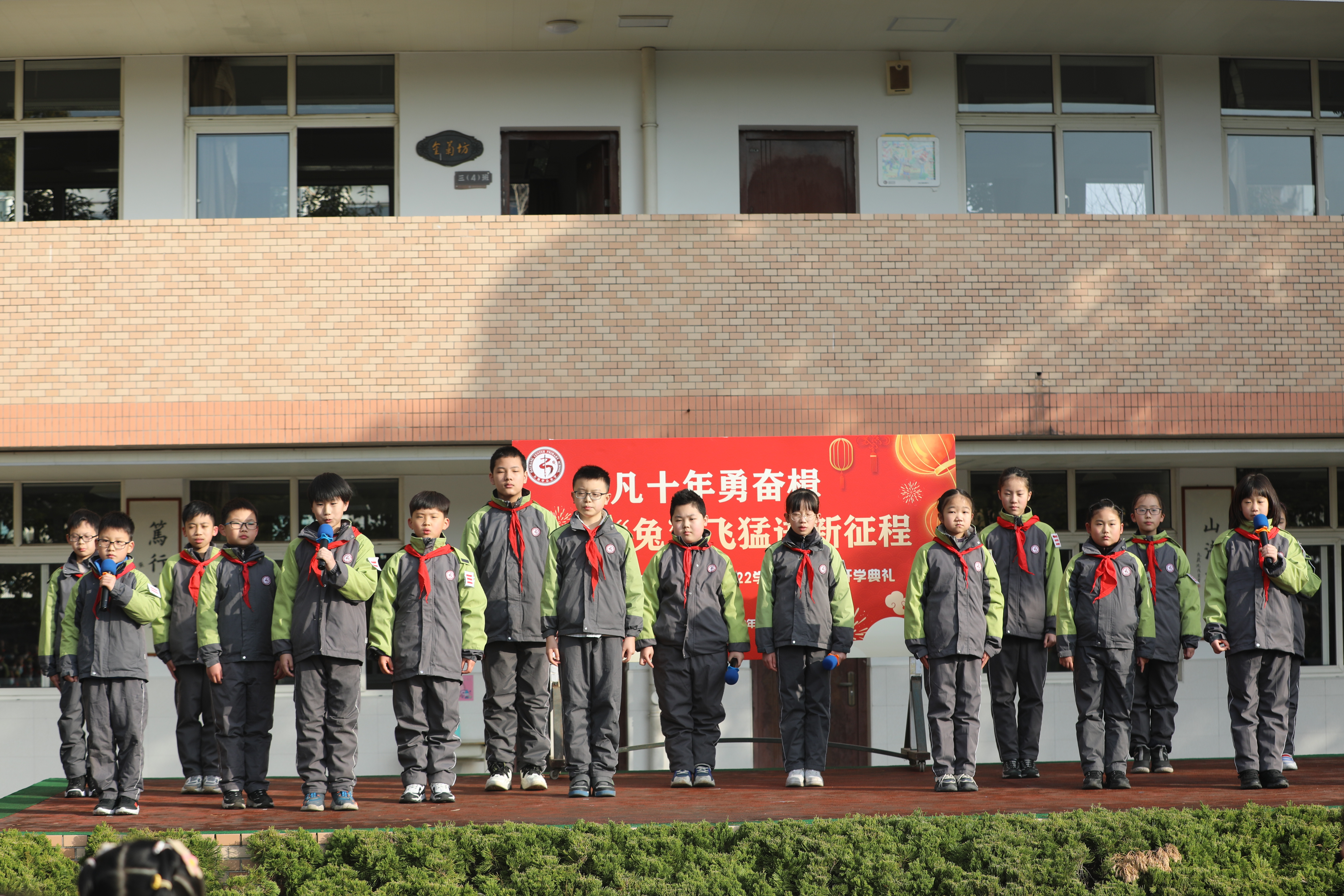 上午8:20,“非凡十年勇奋楫 ‘兔’飞猛进新征程”大场中心小学2022学年第二学期开学开学典礼隆重举行。