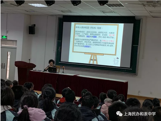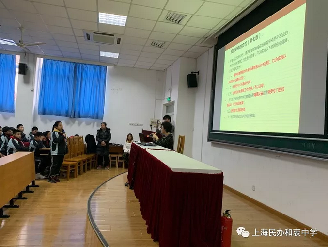 2020年1月9日星期四,为了提高我校学生的法律意识,争做一个知法、尊法、守法、阳光明理的好少年,特邀上海正策律师事务所的黄培明律师为我校七年级全体师生进行了法律知识讲座。