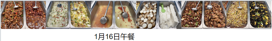 | 1月22日午餐菜单 | 1月23日午餐菜单 | ||||||||||||